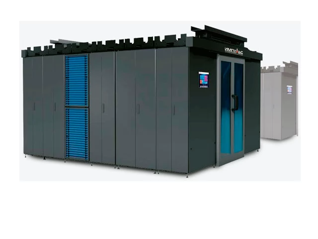 ИБП установлены в 19” шкафах, которые идентичны по формату шкафам с ИТ-оборудованием, что упрощает монтаж и обслуживание. Мощность ИБП масштабируется от 20 до 520 кВА с высокой эффективностью до 98% в экономичном режиме. Используется N+X структура параллельного резервирования, что повышает отказоустойчивость системы. Разделение воздушных потоков на горячий и холодный контуры поддерживается в единой гермозоне, что значительно снижает энергозатраты на охлаждение.
