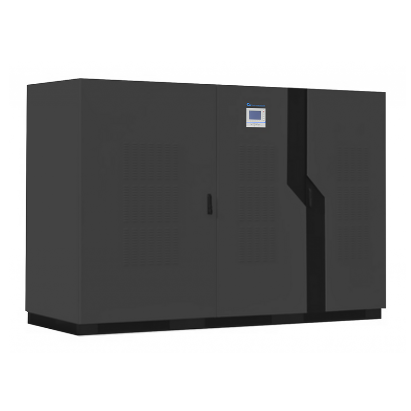 Основные характеристики этого ИБП включают номинальную мощность 250 кВА и активную мощность 225 кВт с коэффициентом мощности на выходе 0,9. Диапазон входных напряжений широкий — от 285 до 498 В с возможностью настройки, а частота сети поддерживается в диапазоне 50/60 Гц ±5 Гц, что делает устройство совместимым с разнообразными системами электроснабжения. Стабилизация выходного напряжения осуществляется с точностью ±1%, обеспечивая "чистую" синусоиду с искажением не более 3% при линейной нагрузке. Среди преимуществ выделяются: