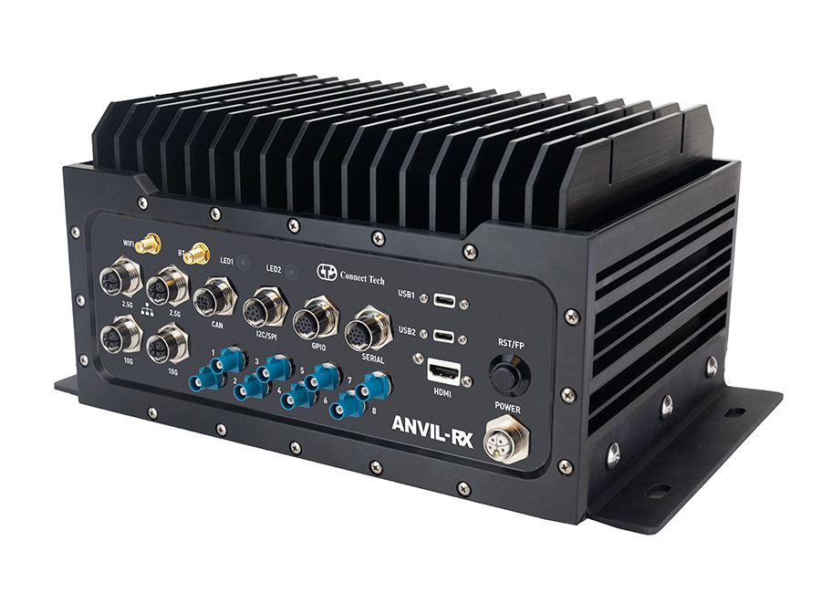 AI-компьютер Connect Tech Anvil-RX — это высокопрочный и бесшумный платформенный комплекс с пассивным охлаждением, построенный на базе мощного вычислительного модуля NVIDIA Jetson AGX Orin. Устройство разработано для работы в экстремальных промышленных условиях, имеет степень защиты IP67 и оснащено герметичными M12 и PC разъемами, что гарантирует надежную эксплуатацию в суровых средах. Anvil-RX поддерживает до 16 ТБ NVMe-накопителей и предлагает обширный набор интерфейсов, включая четыре гигабитных Ethernet порта, два USB 3.2 порта, два CAN интерфейса, восемь GPIO, два UART порта с поддержкой RS-232/422/485, а также один HDMI для видеовывода. Благодаря этим возможностям платформа максимально адаптирована для внедрения в задачи автономных мобильных роботов, аграрных решений, промышленных систем и распределенных IoT проектов с высокими требованиями к вычислительной мощности и надежности.