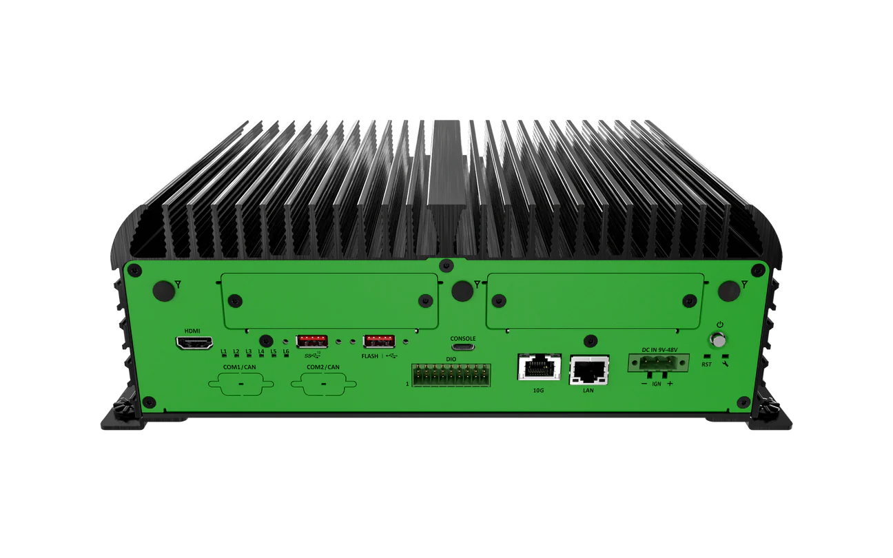 В основе системы лежит мощный NVIDIA Jetson AGX Orin с 8- или 12-ядерным 64-битным процессором Arm Cortex-A78AE и графическим ускорителем Ampere с до 2048 CUDA ядрами и 64 тензорными ядрами, что обеспечивает до 275 TOPS вычислительной мощности. Модуль оснащается 32 или 64 ГБ высокоскоростной LPDDR5 памяти с частотой 3200 МГц. Для хранения данных предусмотрена встроенная eMMC 5.1 на 64 ГБ и поддержка внешних накопителей через слоты расширения M.2 типов B, E и M с поддержкой NVMe SSD и беспроводных модулей. Питание осуществляется в широком диапазоне 9–48 В постоянного тока с возможностью расширения до 110 В, а также реализована продвинутая система управления питанием с защитой от перенапряжения, перегрузки и обратной полярности.