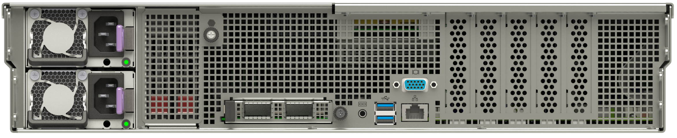 Пантера-12 G3 поддерживает 8 модулей памяти DDR4 с общей емкостью до 1024 ГБ, обеспечивая высокую скорость обработки данных. В дисковой подсистеме доступно до 8 отсеков 3,5” для SAS/SATA и NVMe SSD, что позволяет создавать быстрые и надежные хранилища. Есть несколько слотов расширения — PCIe x8 и PCIe x16 — для подключения дополнительных сетевых карт или контроллеров, а также резервированные источники питания мощностью по 600 Вт для высокой надежности работы системы.