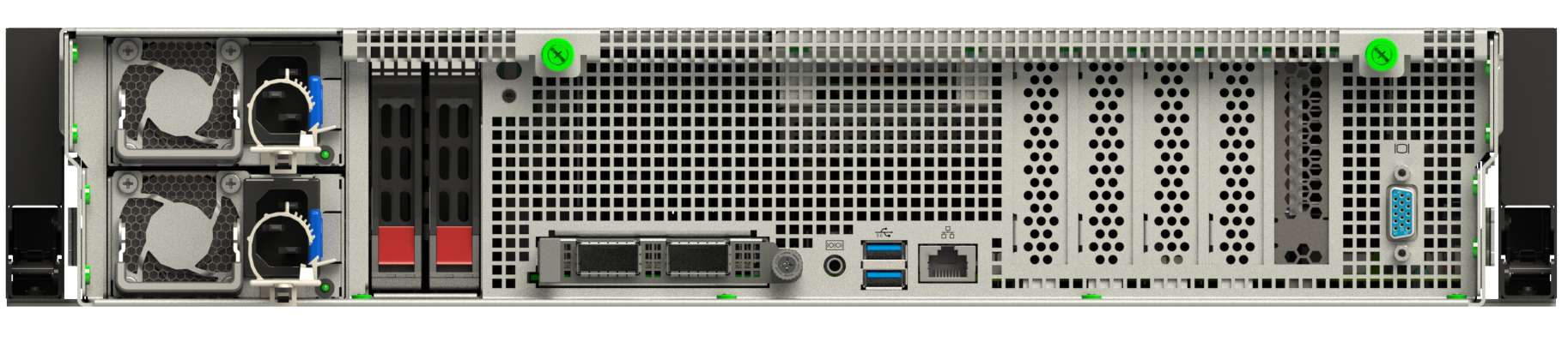 Пантера-26 G3 оборудована шестью слотами расширения PCIe (5 × PCIe 16x, 1 × PCIe 8x) и одним слотом OCP 3.0 x16, что обеспечивает широкие возможности для интеграции дополнительных RAID-контроллеров, сетевых карт и ускорителей. Сервер поддерживает конфигурации с поворотной кассетой для дисков, позволяющей выбирать между накопителями SATA/SAS и NVMe для оптимального баланса скорости и объема хранения. Электропитание реализовано с резервированием по схеме 1+1 на базе CRPS блоков мощностью 1100 Вт, что гарантирует непрерывность работы даже при отказе одного из блоков.