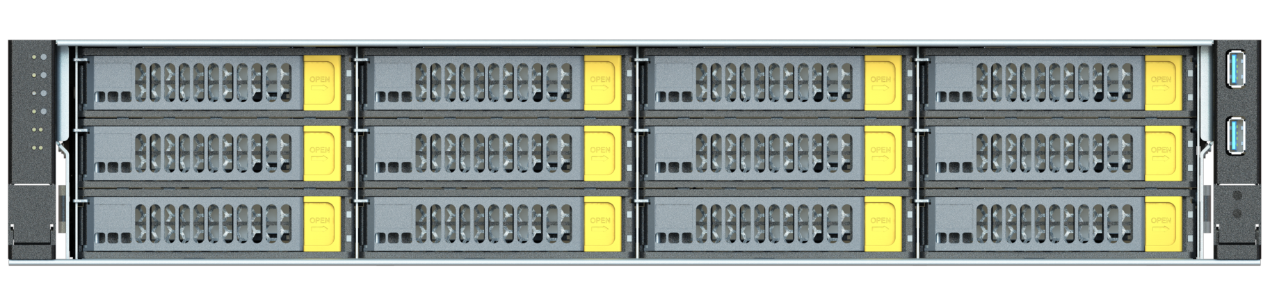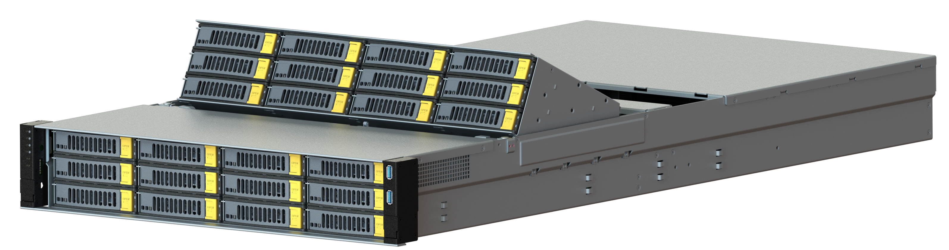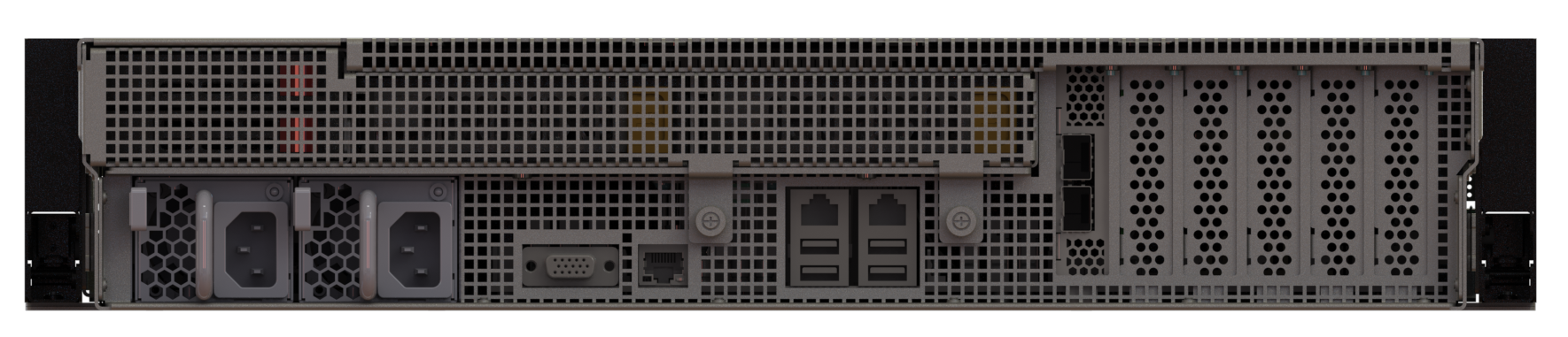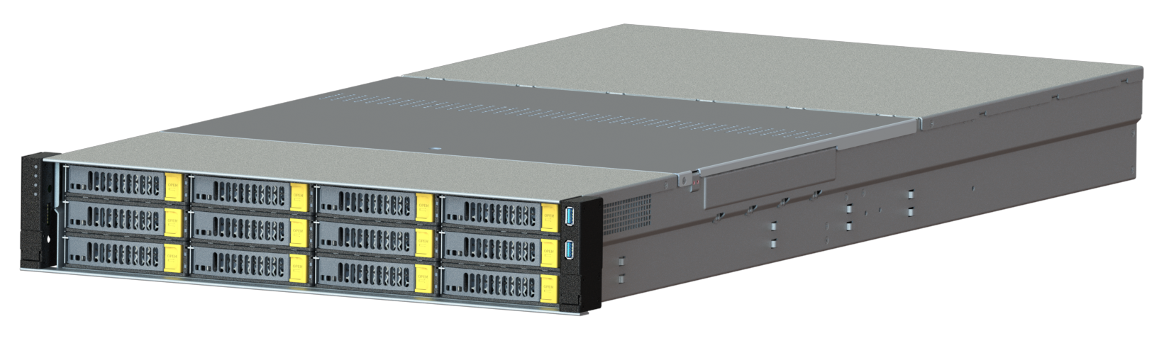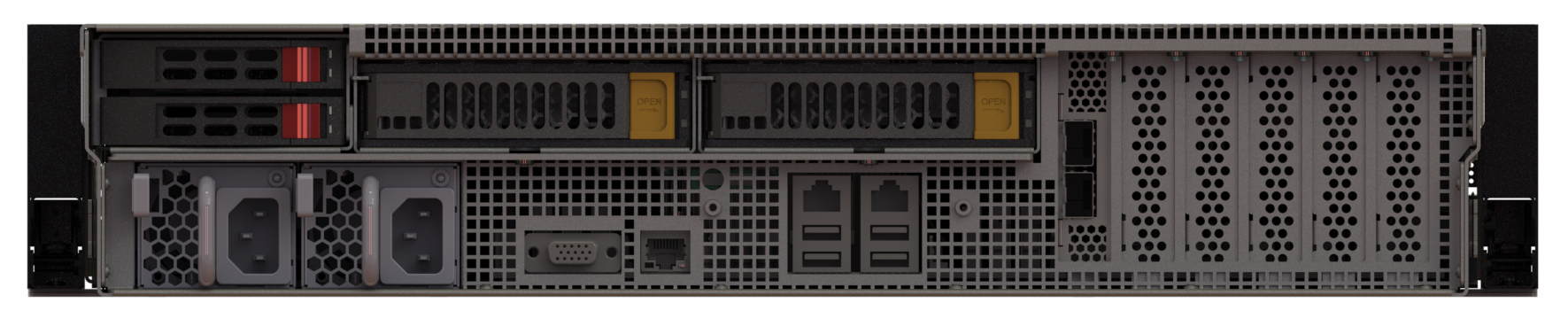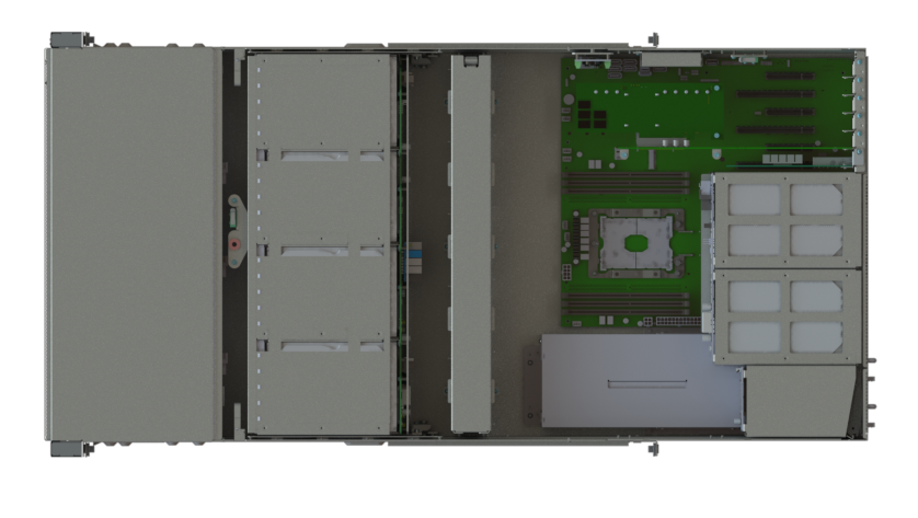На передней панели расположено до 26 горячезаменяемых слотов для 3.5” SAS/SATA накопителей, что позволяет строить отказоустойчивые RAID массивы и масштабируемые решения хранения данных. Дополнительно поддерживаются 2 слота для 2.5” SATA или NVMe накопителей для системных нужд или кэширования.
