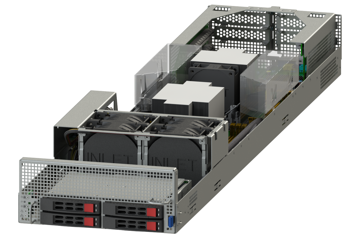 Модуль поддерживает горячую замену без остановки работы всего шасси, что повышает доступность и снижает время простоя. Продуманная конструкция и панель управления с индикацией состояния упрощают диагностику и обслуживание. Энергоснабжение обеспечивается через интеграцию с шасси, использующим 1+1 CRPS блоки питания мощностью до 3000 Вт. Модуль рассчитан на работу в системах с высокими требованиями по надежности и отказоустойчивости, что делает его оптимальным решением для высоконагруженных вычислительных кластеров, научных расчетов и систем моделирования CAE, CFD и FEA.