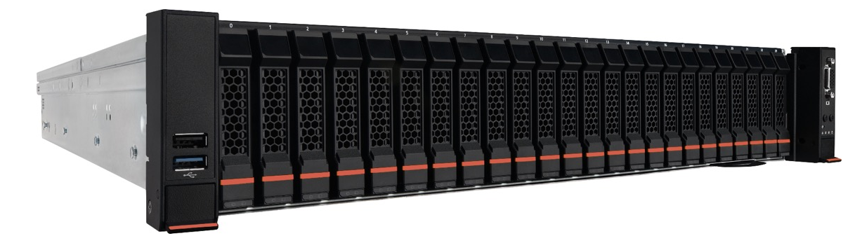 Для хранения данных предусмотрено до 26 отсеков с разными интерфейсами: 24 × SFF SAS4/SATA/NVMe U.3 спереди и 2 × SFF SAS4/SATA/NVMe U.3 сзади. Общий поддерживаемый объем памяти достигает 8 ТБ (32 × 256 ГБ), что позволяет реализовать разнообразные сценарии хранения и обработки данных.