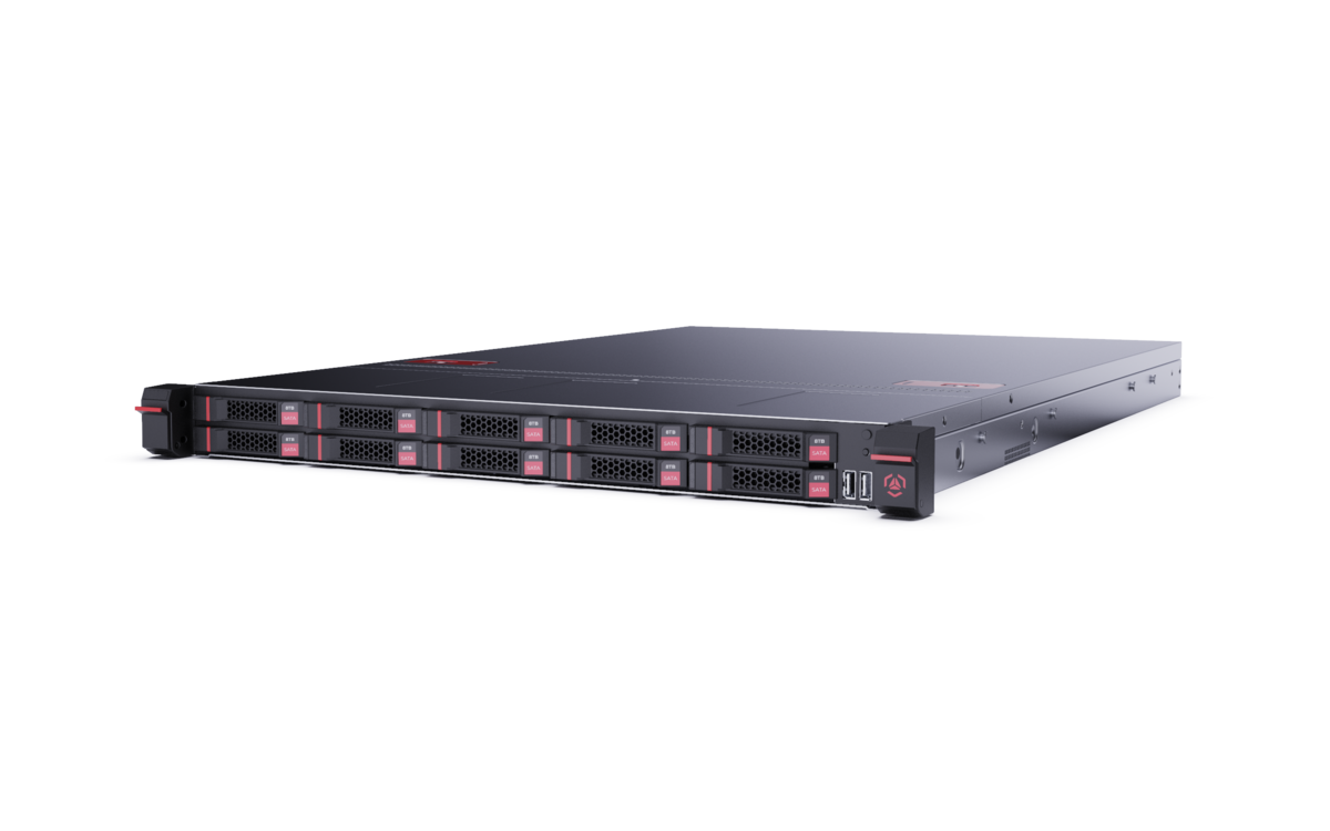 Сервер оснащён 10_hot-swap_отсеков для накопителей 2,5” SATA/SAS, что позволяет обеспечить высокую плотность хранения данных с удобством обслуживания. Платформа также предлагает слоты PCIe 3.0 для расширения функциональности, в том числе поддержку графических ускорителей и высокоскоростных сетевых карт. Управление и мониторинг системы осуществляется с помощью BMC Aspeed AST2500 и протокола IPMI 2.0, что облегчает удалённый контроль состояния оборудования. Для защиты данных и оборудования предусмотрены функции безопасности, в том числе TPM 2.0, датчик вскрытия и запираемая фронтальная панель.