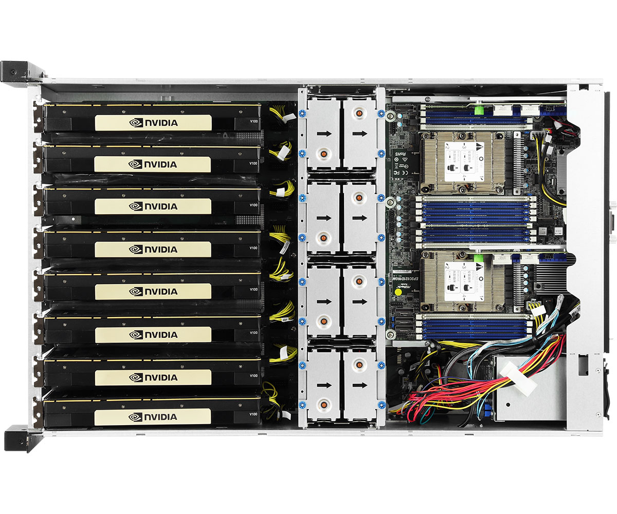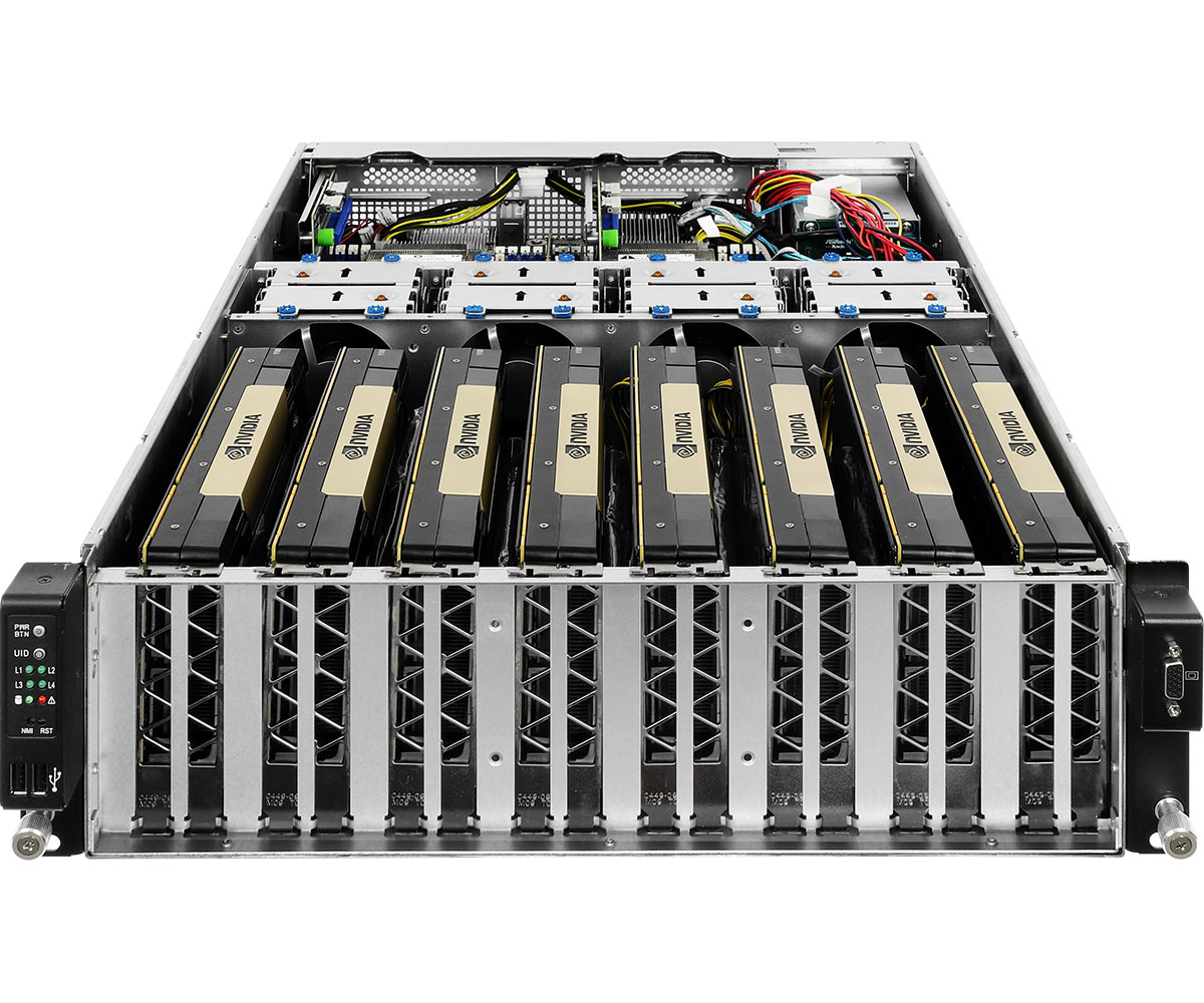 ASRock Rack 3U8G+/C621 — мощный сервер с двумя процессорами Intel Skylake и восемью графическими ускорителями NVIDIA T4, предназначенный для задач искусственного интеллекта, виртуализации и обработки больших данных в корпоративных центрах обработки данных.