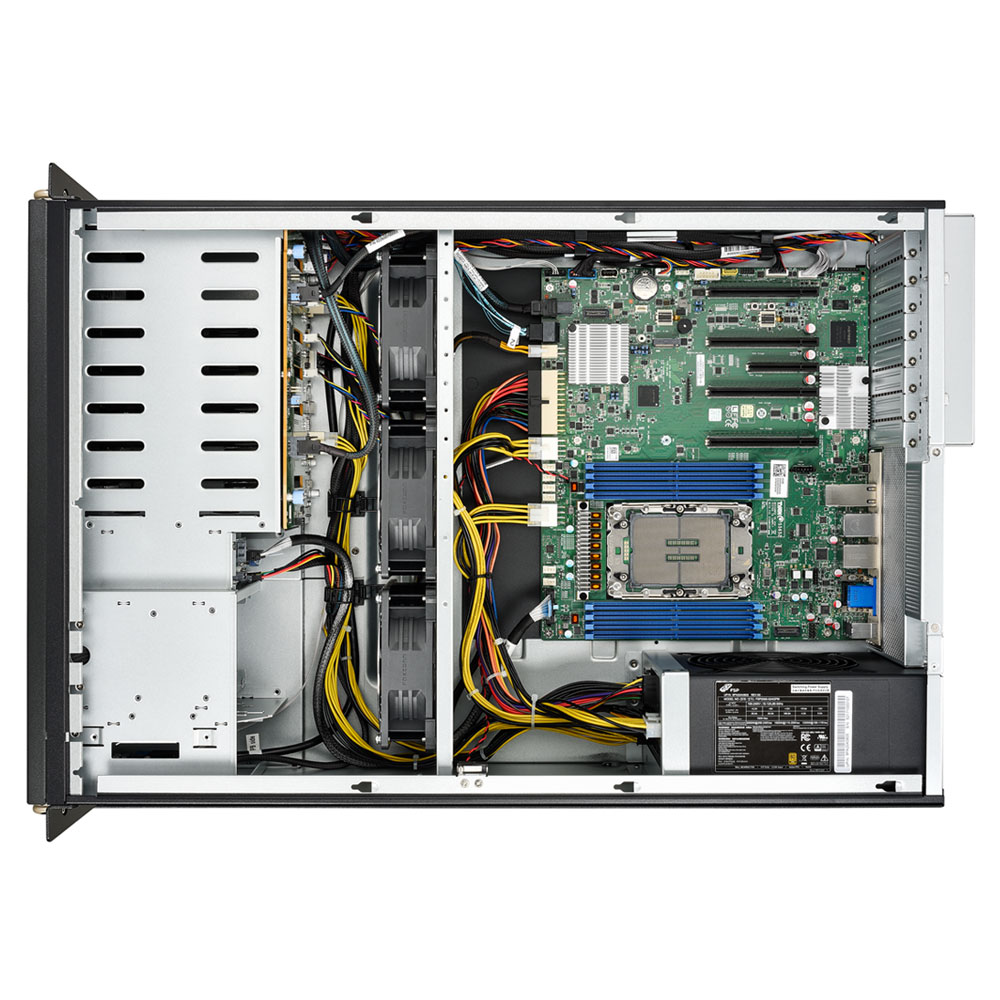 Основой сервера является процессор Intel Xeon Scalable четвёртого или пятого поколения (Sapphire Rapids / Emerald Rapids), который идеально подходит для работы с высокоинтенсивными вычислительными нагрузками, включая задачи машинного обучения и научных расчётов. В дополнение к мощному процессору сервер оснащён 8 слотами DDR5 с поддержкой частоты до 4800 МТ/с, что даёт возможность использовать большую объём памяти для обработки огромных данных. Особое внимание стоит уделить поддержке до четырёх двухслотовых графических ускорителей, подключаемых через интерфейс PCIe 5.0 x16, что делает сервер отличным выбором для высокопроизводительных приложений, требующих интенсивной графической обработки, таких как AI-инференс и обработка изображений и видео.