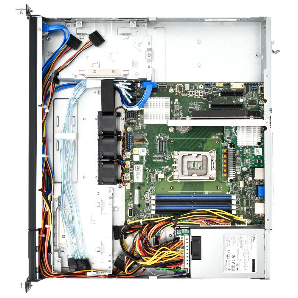 Сервер оборудован одним блоком питания мощностью 300 Вт с сертификатом 80 PLUS Gold, что обеспечивает высокий КПД и снижает тепловыделение, а также минимизирует энергозатраты в масштабных дата-центрах. Использование современных энергоэффективных компонентов помогает поддерживать баланс между производительностью и энергопотреблением, способствуя устойчивой работе сервера при любых нагрузках.