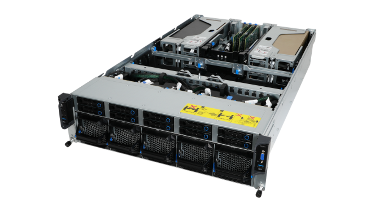 Сервер Quanta QCT QuantaGrid D54U-3U оснащён четырьмя графическими ускорителями NVIDIA L40 и двумя процессорами Intel Sapphire Rapids, обеспечивая высокую производительность в компактном корпусе формата 3U для широкого спектра вычислительных задач.