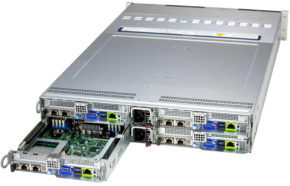 Сервер Supermicro BigTwin SuperServer SYS-222BT-HNR — это современное и мощное решение в компактном 2U корпусе, включающее четыре горячезаменяемых узла BigTwin. Каждый узел оснащён шестью слотами для NVMe/SAS/SATA 2.5" дисков с поддержкой горячей замены, что обеспечивает высокую плотность хранения данных и удобство обслуживания без прерывания работы. Такая архитектура делает сервер идеальным для построения масштабируемых гиперконвергентных инфраструктур с высокими требованиями к производительности и надёжности.