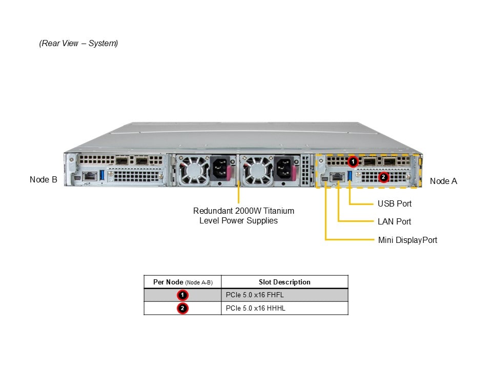 Два узла в форм-факторе 1U. Каждый узел поддерживает следующее: