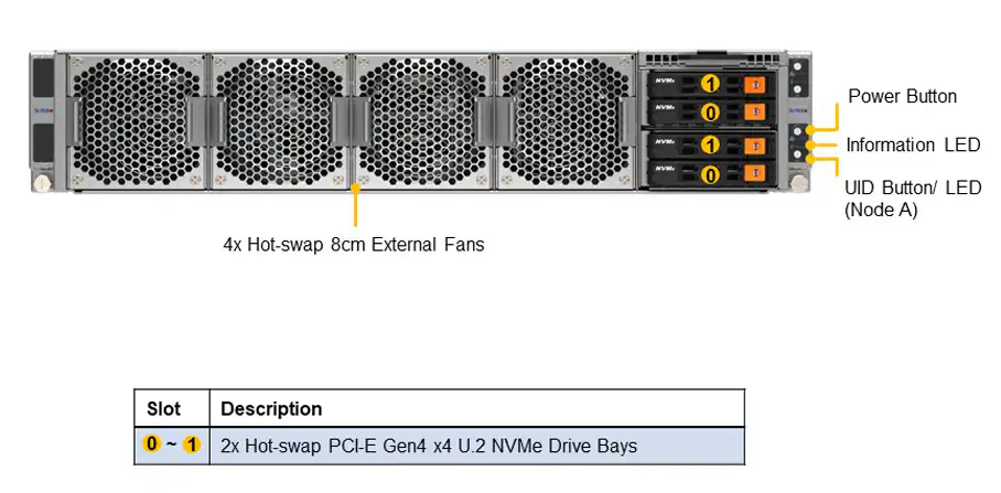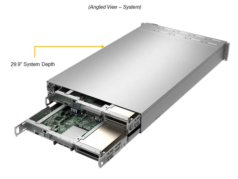 Две системы (узла) с возможностью горячей замены в форм-факторе 2U. Каждый узел поддерживает следующее: