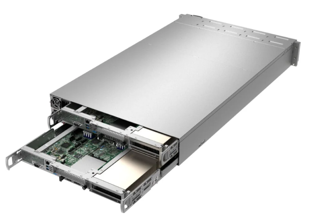 GPU сервер Supermicro AS-2114GT-DPNR. Для обеспечения качества и целостности этот продукт продается только как полностью собранная система (на каждый узел установлен минимум 1 ЦП, 2 модуля DIMM, 1 NVMe U.2 или M.2, 1 AIOM, 1 графический процессор). Компания Supermicro рекомендует устанавливать карты расширения (AOC) из-за оптимизированной плотности форм-фактора 2U.