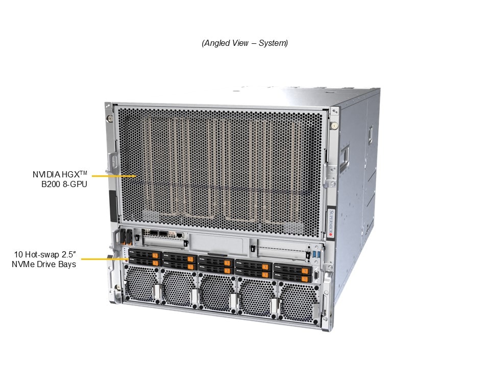 Сервер Supermicro GPU SuperServer SYS-A21GE-NBRT — это высокопроизводительная вычислительная платформа, созданная для решения самых сложных и ресурсоёмких задач в области искусственного интеллекта, научных исследований и обработки больших данных. Оснащенный двумя современными процессорами Intel® Xeon® Scalable 5-го и 4-го поколения, он поддерживает до восьми графических процессоров NVIDIA B200 SXM с общей памятью 1,4 ТБ HBM3e, что обеспечивает непревзойденную вычислительную мощность и высокую пропускную способность для работы с большими моделями и сложными вычислениями.