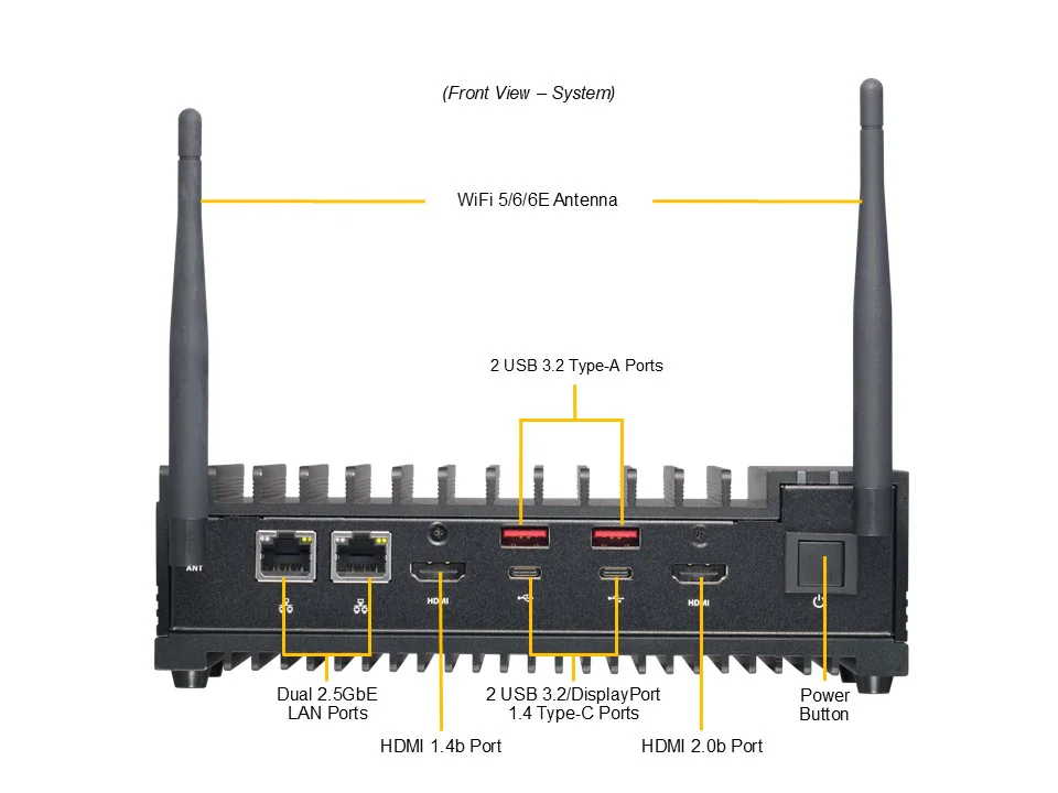 Для подключения к сети SuperServer SYS-E100-13AD-C оснащен 2 портами LAN 2.5GbE, что обеспечивает высокоскоростное соединение и передачу данных по сети.