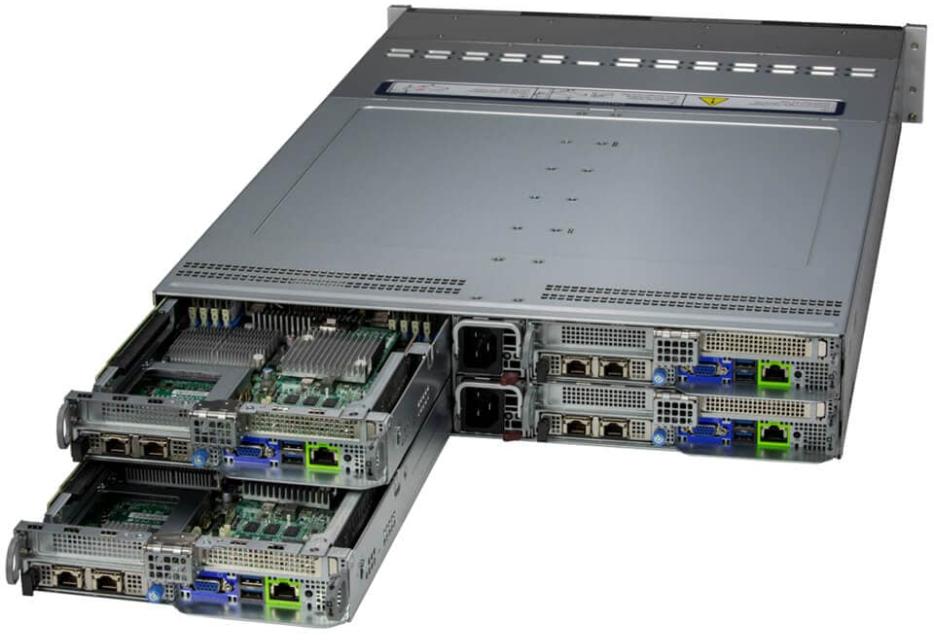Сервер Supermicro SYS-221BT-HNC9R — это мощная 4-узловая система BigTwin в форм-факторе 2U, которая сочетает в себе высокую плотность вычислений и гибкость в хранении данных. Каждый узел поддерживает 6 дисков 2,5” NVMe/SATA с возможностью горячей замены, включая два гибридных NVMe-диска, что делает сервер отличным выбором для высокопроизводительных вычислений и интенсивных рабочих нагрузок. Он идеально подходит для критически важных приложений, виртуализации, аналитики больших данных и построения масштабируемых решений для хранения данных.