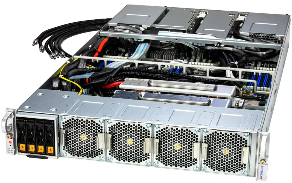 GPU сервер Supermicro SYS-221GE-TNHT-LCC. Система DP Intel 2U с жидкостным охлаждением и 4 графическими процессорами NVIDIA HGX H100.