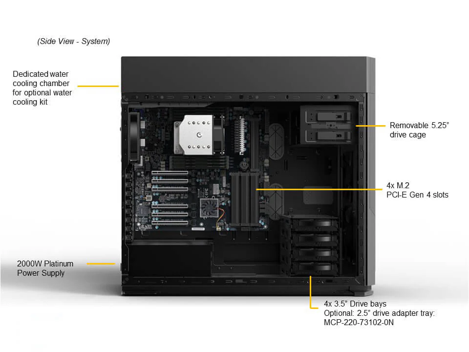 Supermicro Workstation AS -5014A-TT идеально подходит для профессионалов в области графического дизайна, финансового моделирования, обработки больших данных и обучения искусственному интеллекту. Благодаря своей мощности и гибкости, эта станция подходит для сложных вычислительных задач в научных исследованиях, анимации, 3D-рендеринге и многом другом. Это решение для тех, кто требует максимальной производительности и надежности при работе с современными вычислительными нагрузками.
