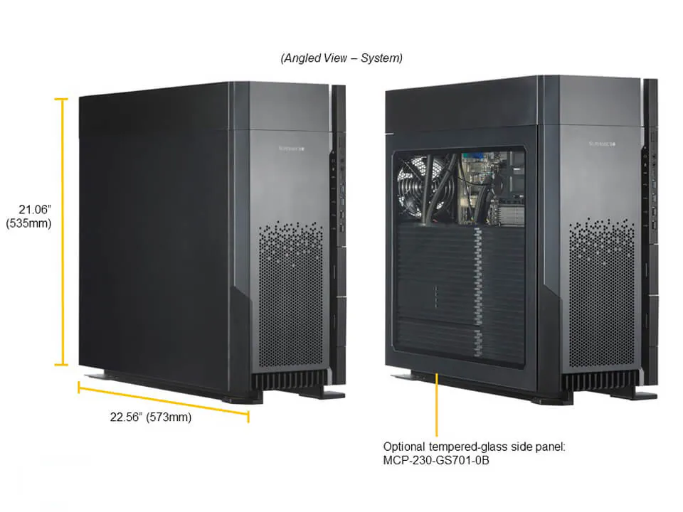 Сервер Supermicro Workstation AS -5014A-TT — это мощная рабочая станция формата Full Tower (5U), идеально подходящая для выполнения вычислительно интенсивных задач в таких областях, как искусственный интеллект, глубокое обучение, 3D-графика, проектирование и создание контента. Оснащённый процессорами AMD Ryzen™ Threadripper™ PRO, с поддержкой до 64 ядер и 256 МБ кэша, он позволяет легко справляться с большими объемами данных, эффективно обрабатывать модели AI/ML и ускорять выполнение научных и инженерных расчетов.