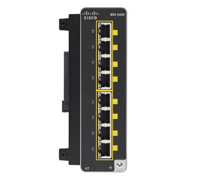 Cisco IEM-3500-8P= — это модуль расширения для промышленных коммутаторов серии Cisco IE3500 Rugged, предназначенный для увеличения количества медных портов с поддержкой PoE/PoE+ без замены базового устройства. Модуль добавляет восемь гигабитных медных портов 10/100/1000BASE-T с поддержкой питания по Ethernet и устанавливается непосредственно на базовый коммутатор IE3500, формируя единый логический коммутатор с увеличенной портовой ёмкостью и общим управлением. Такое решение позволяет гибко наращивать количество PoE-портов по мере роста числа подключаемых IP-камер, точек доступа Wi‑Fi, терминалов и других PoE-совместимых устройств, сохраняя при этом единый стек управления и минимизируя физическое пространство в шкафу. Модуль IEM-3500-8P= выполнен в промышленном исполнении для монтажа на DIN-рейку, соответствует требованиям по вибро- и ударостойкости, электромагнитной совместимости и температурной устойчивости линейки IE3500 Rugged и интегрируется в общую архитектуру питания PoE базового коммутатора, обеспечивая общий суммарный PoE-бюджет до 480 Вт при соответствующей конфигурации системы.