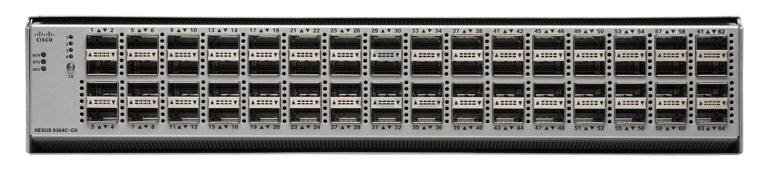 Коммутатор Cisco Nexus 9364C-GX — это 2RU устройство с 64 фиксированными портами QSFP28 (40/100 Гбит/с), обеспечивающее пропускную способность до 12,8 Tbps и производительность более 4,3 Bpps. Коммутаторы Cisco Nexus 9300-GX представляют собой новое поколение фиксированных коммутаторов серии Cisco Nexus 9000, способных поддерживать 400-гигабитный Ethernet.