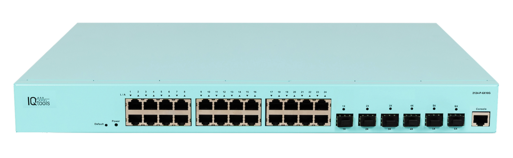 IQTools 2124-P-6X10G — надежное и функциональное решение для создания современных предприятий и операторских сетей с поддержкой PoE+, высокой пропускной способностью и расширенным набором функций.