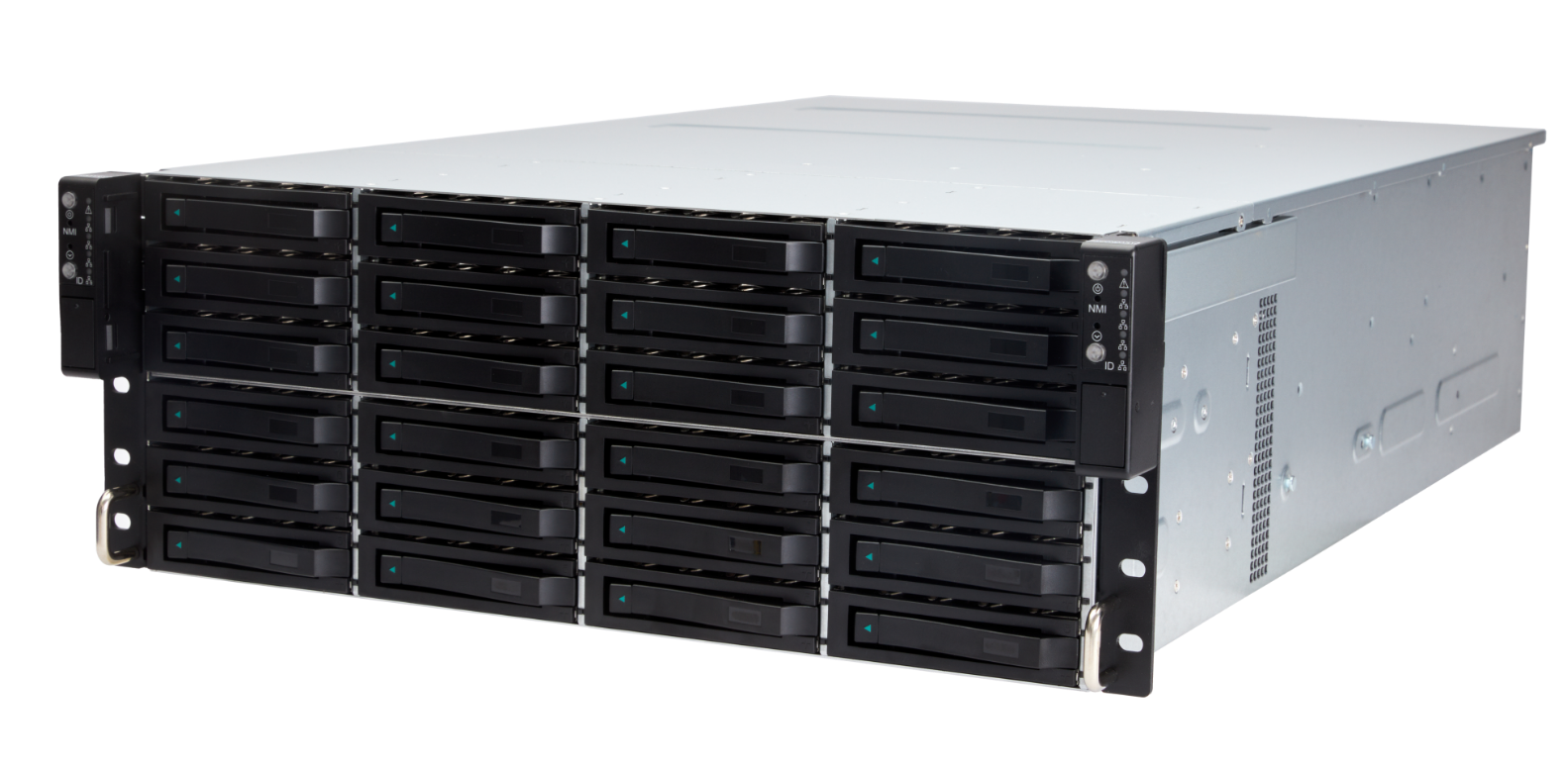 Корпус и шасси: стоечное исполнение формата 4U с двумя контроллерами в едином корпусе обеспечивает компактное размещение оборудования в стандартных 19-дюймовых стойках и эффективное использование пространства в дата-центре.