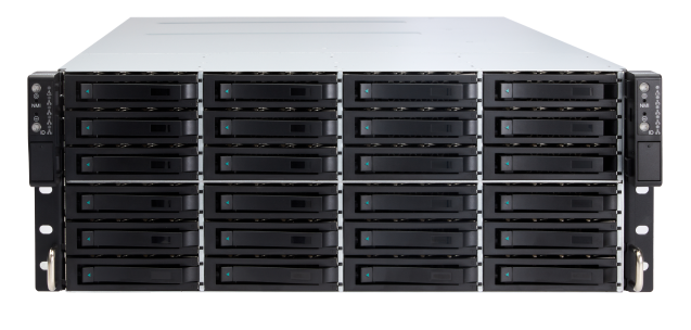 Система выполнена в стоечном форм-факторе 4U, где оба контроллера размещены в едином корпусе. Все критически важные компоненты — контроллеры, дисковые порты, пути подключения к дискам, блоки питания и элементы охлаждения — задублированы, что исключает единую точку отказа и обеспечивает непрерывный доступ к данным. Расширение хранилища выполняется через модули JBOD, поддерживающие высокоскоростные SAS-подключения.