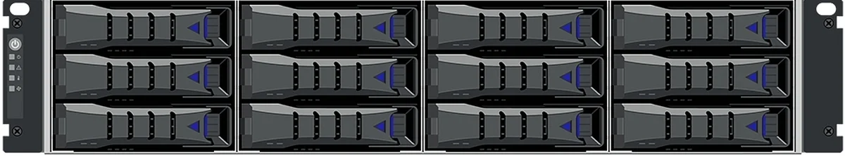 Благодаря компактному 2U-корпусу модуль обеспечивает установку до 12 дисков LFF (3.5”), что позволяет эффективно использовать пространство стойки при наращивании хранения. Надежная конструкция и совместимость с платформами хранения YADRO гарантируют стабильную и безопасную работу в составе IT-инфраструктуры.