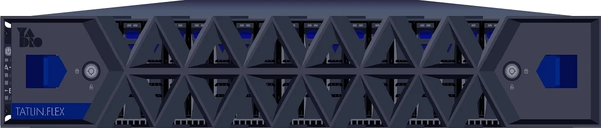 YADRO TATLIN.FLEX.TWIN — это оптимальное решение для СУБД, виртуализации, филиалов, ЦОД среднего масштаба и других инфраструктур, где важны плотность хранения, высокая производительность и отказоустойчивость в компактном формате.