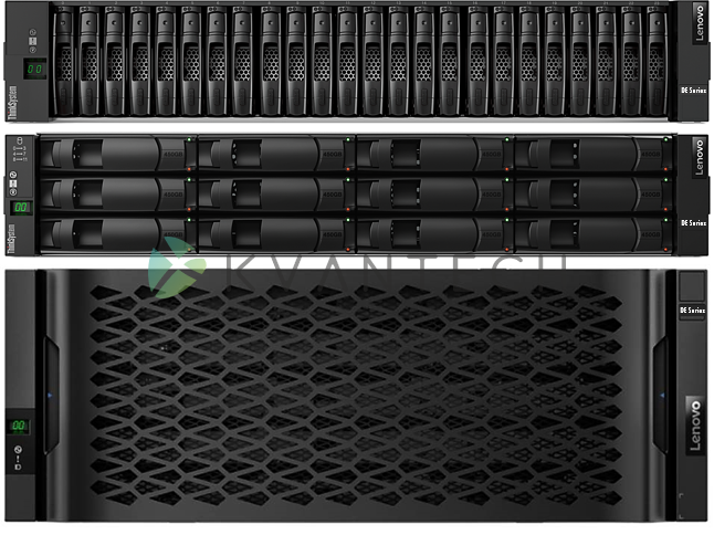 Система хранения Lenovo ThinkSystem DE4000H представляет собой высоконадежное и масштабируемое решение корпоративного класса для смешанных рабочих нагрузок. В конфигурации используется форм-фактор 2U с возможностью установки до 24 накопителей малого формата (2,5 дюйма), что обеспечивает баланс между площадью установки и ёмкостью хранения данных. Устройство оснащено двумя контроллерами с 32 ГБ памяти Gen2 каждый, обеспечивающими эффективное управление и высокую производительность при работе с данными.